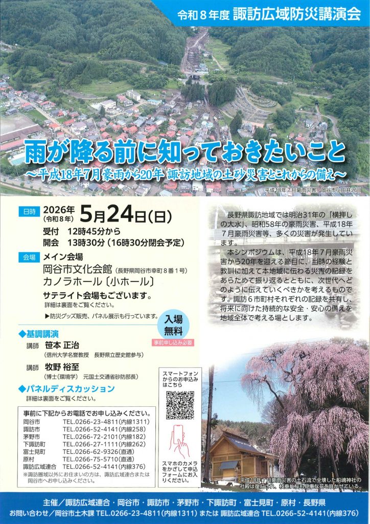 「雨が降る前に知っておきたいこと~平成18年7月豪雨から20年 諏訪地域の土砂災害とこれからの備え~」