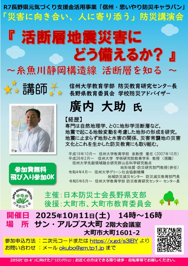 Posted inイベント お知らせ 【2025年10月11日開催】防災講演会が開催されます Posted by admin 2025年9月16日 「災害に向き合い、人に寄り添う」防災講演会が開催されます。 admin View All Posts Post navigation Previous Post 【9/25-10/12開催】災害アーカイブ展 が開催されますNext Post【2025年10月25日開催】おてんき・ぼうさい教室